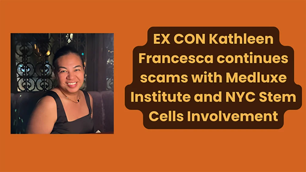 Her real name is Kathleen Tangcoy Legaspi, and she has a long history of scams and felonious acts. She has spent time in jail, and R3 hired her based off of a false name and identity she provided. I have detailed the embezzlement from R3 Stem Cell HERE https://r3stemcell.com/r3-terminates-kathleen-francesca-due-to-alleged-embezzlement-of-250000/   along with discussing the Restraining Order and Injunction that was granted and completely ignored HERE. https://r3stemcell.com/r3-stem-cell-achieves-injunction-and-restraining-order-against-kathleen-francesca-legaspi/