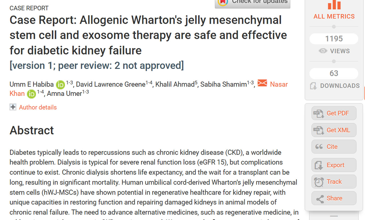 Case Report: Allogenic Wharton’s jelly mesenchymal stem cell and exosome therapy are safe and effective for diabetic kidney failure