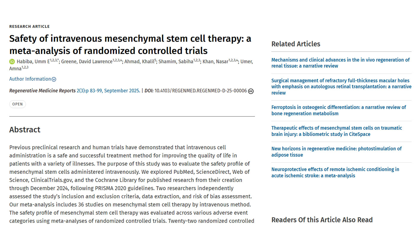 Safety of intravenous mesenchymal stem cell therapy: a meta-analysis of randomized controlled trials