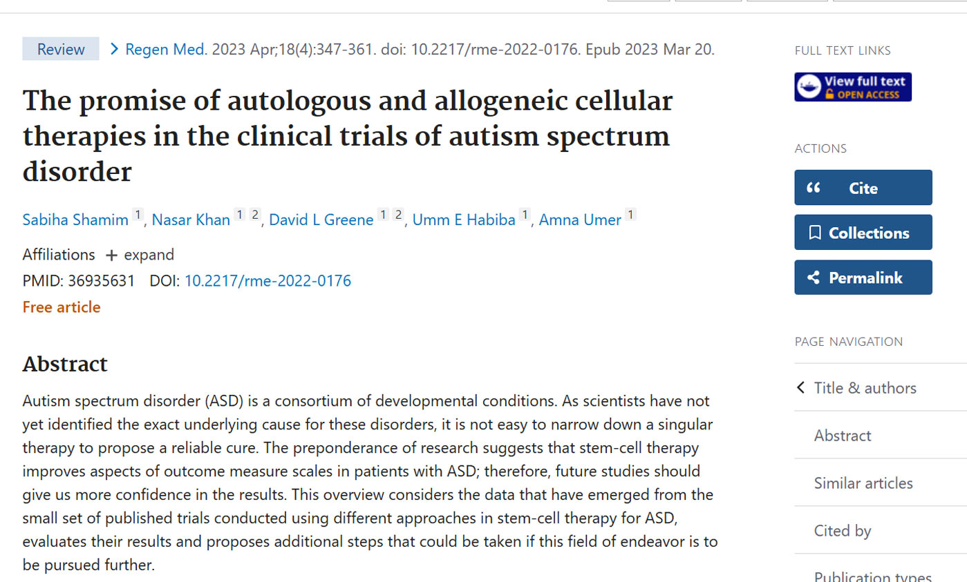 The promise of autologous and allogeneic cellular therapies in the clinical trials of autism spectrum disorder
