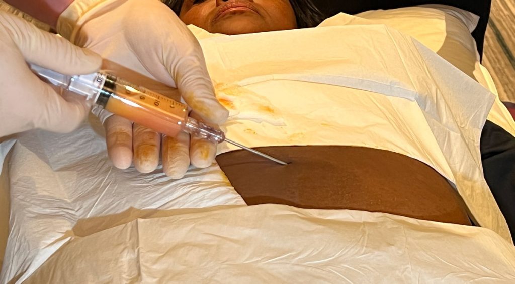 Are there risks with the procedure? Yes but they are minimal. As with any time a needle is placed through the skin, there is a small chance of infection. There is no chance of rejection since it’s your own tissue. It is rare, but a patient could have a minor reaction to the numbing medicine used. Some patients see slight swelling and discharge, which typically resolves within a week.